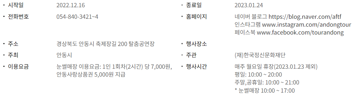 안동에서 맞이하는 첫눈과 즐거운 크리스마스! 새해를 지나 설날까지, 추운 겨울 따뜻한 추억을 안동에서 만들어 보자.