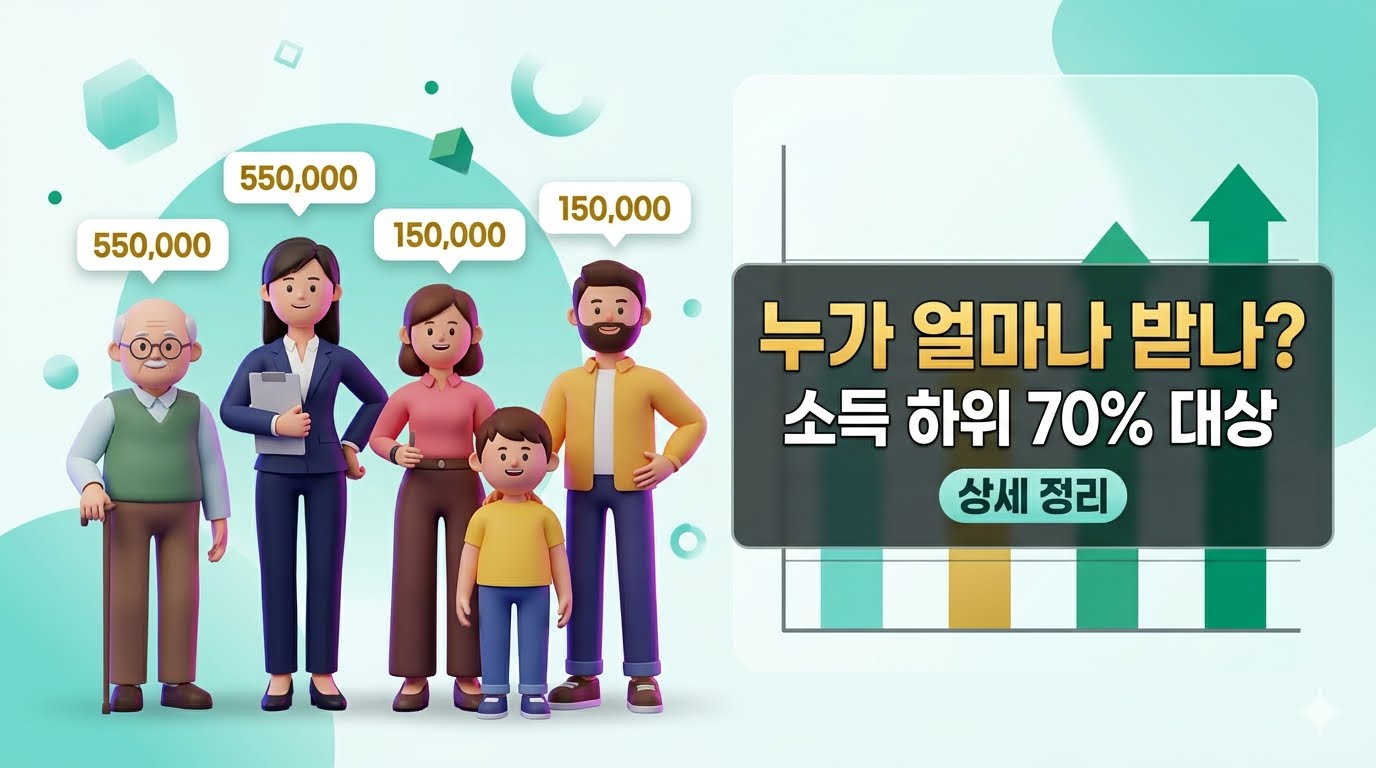 지원 대상은 2026년 3월 30일 기준 국내 거주자 중 소득 하위 70%에 해당하는 국민입니다. 지원 금액은 대상자의 소득 수준과 거주 지역에 따라 세분화되어 차등 지급됩니다.
